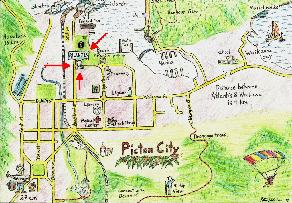 Welcome to your Utopia Away From Home! Once the Kiwi Experience Museum, you can create your own Kiwi experience here. On the foreshore, town around the corner and the middle of the Marlborough Sounds across the street. From dorm to private rooms at very reasonable prices. Free coffee, tea, milk, breakfast, dessert, WiFi, movies and unique to Atlantis Adventure Packages. Enjoy the Top of the South!